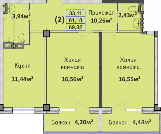 Продаётся 2-комнатная квартира в строящемся доме (Секция 1,2), срок сдачи: I-кв. 2026, общей площадью 69.82 кв.м., на 2 этаже. Новый жилой комплекс "Восточный" от застройщика "СЗ СОЛНЕЧНЫЙ ГОРОД" расположен по адресу Краснодарский край, Абинск, Казанская улица, 9.