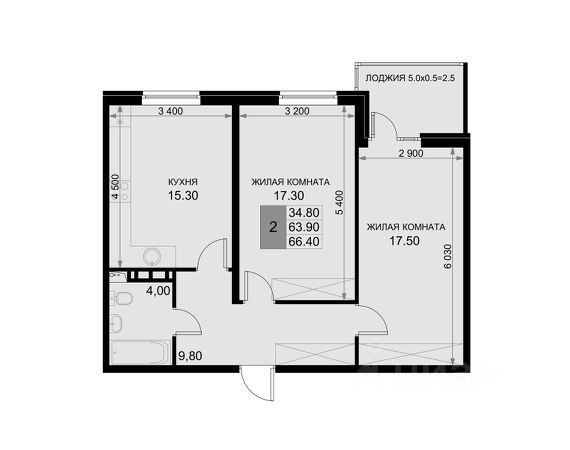 • ✅ Объект наибольшей площади: 66,4 м²