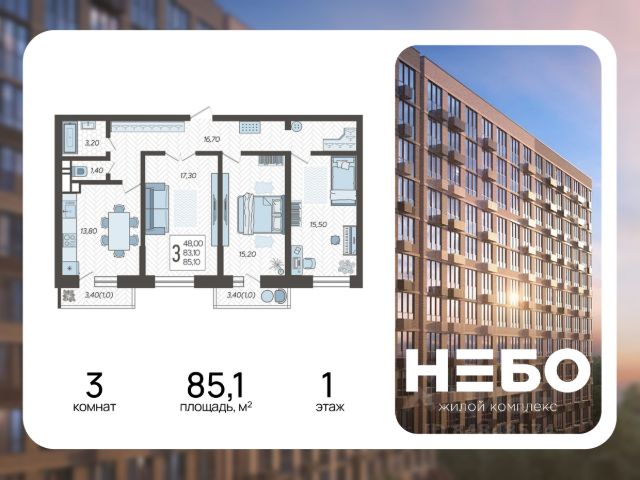 Продаётся 3-комнатная квартира в сданном доме (Литер 3), срок сдачи: II-кв. 2024, общей площадью 86.04 кв.м., на 1 этаже. Новый жилой комплекс "Небо" от застройщика "АСК" расположен по адресу город Краснодар, Ярославская улица.