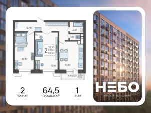 Продаётся 2-комнатная квартира в сданном доме (Литер 3), срок сдачи: II-кв. 2024, общей площадью 65.42 кв.м., на 1 этаже. Новый жилой комплекс "Небо" от застройщика "АСК" расположен по адресу город Краснодар, Ярославская улица.