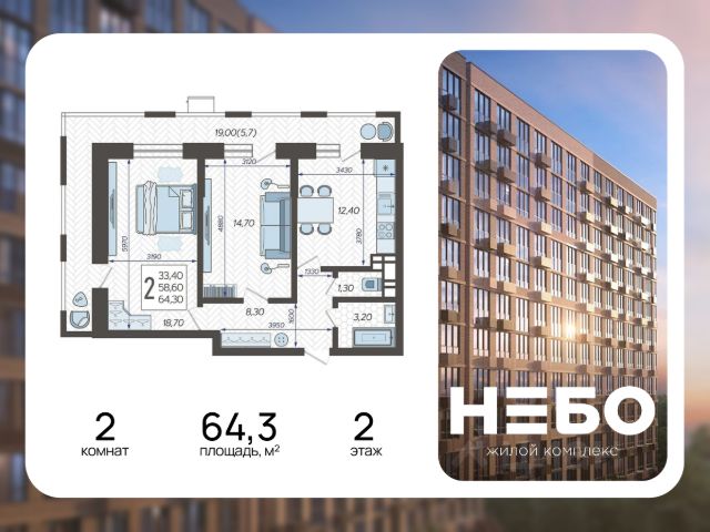 Продаётся 2-комнатная квартира в сданном доме (Литер 3), срок сдачи: II-кв. 2024, общей площадью 59.71 кв.м., на 1 этаже. Новый жилой комплекс "Небо" от застройщика "АСК" расположен по адресу город Краснодар, Ярославская улица.