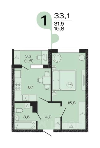 Продаётся 1-комнатная квартира в строящемся доме (Литер 3), срок сдачи: IV-кв. 2027, общей площадью 31.4 кв.м., на 4 этаже.
