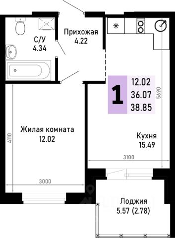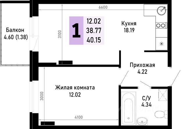Продаётся 1-комнатная квартира в строящемся доме (квартал 7.1 литер 3), срок сдачи: IV-кв. 2026, общей площадью 38.19 кв.м., на 4 этаже. Новый жилой комплекс по ул. Николая Лебедева от застройщика "ССК"