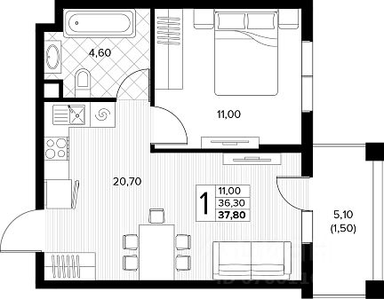 • 1-4 комнатные квартиры площадью от 34,5 м² до 72,5 м² м².