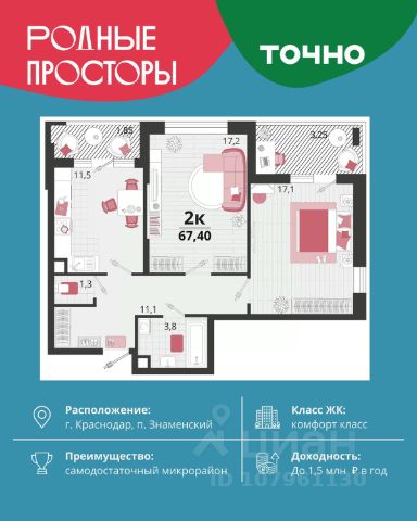В продаже 2-комнатная квартира от застройщика! ЖК "Рекорд" 2 очередь, г. Краснодар, Литер 6 Срок сдачи: 4 кв. 2026, общей площадью 63.3 кв.м., на 13 этаже. Жилой Комплекс "РЕКОРД" - место вашего баланса. Город снаружи природа внутри. Квартал с максимумом возможностей для хорошо сбалансированной жизни. Расположен в оживленном благоустроенном районе города. Сочетает в себе и жилую застройку, и торгово-деловые центры. Здесь все под рукой, здесь центр городских событий. • Уникальная локация центр города • Современная архитектура • Панорамные виды • Двухуровневые квартиры с камином и террасой • Элегантные входные группы • Архитектурная подсветка фасадов • Школа во дворе (1550 мест) • Детский сад во дворе (110 мест) • Двор без машин • Подземный паркинг и гостевые парковки • Круглосуточный пост охраны • Медицинский центр • Фитнес центр • Система "умный дом" • Баскетбольная и универсальная спортивные площадки • Современные развивающие детские игровые площадки • Ресторанный дворик с аллеей и фонтаном • Храм с уникальной архитектурой • Премиальные лифты с подсветкой и музыкой • Звукоизоляционные окна • Зарядные устройства для электромобилей • Ароматизация мест общего пользования • Элегантные входные группы • Дизайнерские лобби • Консьерж сервис • Сквозные подъезды и доступ по Face ID • Кладовки • Кондиционирование холлов • Благоустройство территории с Арт объектом • Воркаут-зоны • Зона коворкинга • Wi-fi и USB розетки на всей территории двора Приобрести квартиру можно одним из способов: -субсидированная семейная ипотека 4,5 % на весь срок -рассрочка до конца строительства -оплата наличными -дистанционная покупка Позвоните сейчас и забронируйте квартиру со скидкой! Продам квартиру в новостройке в округе Карасунский в городе Краснодар.