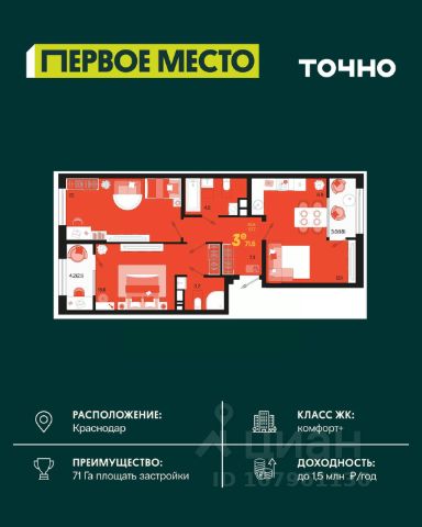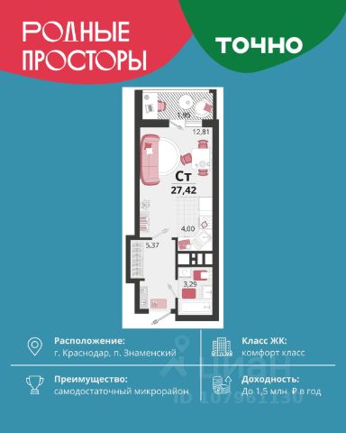 В продаже квартира-студия от застройщика! ЖК "Рекорд" 2 очередь, г. Краснодар, Литер 4 Срок сдачи: 4 кв. 2026, общей площадью 30.4 кв.м., на 3 этаже. Жилой Комплекс "РЕКОРД" - место вашего баланса. Город снаружи природа внутри. Квартал с максимумом возможностей для хорошо сбалансированной жизни. Расположен в оживленном благоустроенном районе города. Сочетает в себе и жилую застройку, и торгово-деловые центры. Здесь все под рукой, здесь центр городских событий. • Уникальная локация центр города • Современная архитектура • Панорамные виды • Двухуровневые квартиры с камином и террасой • Элегантные входные группы • Архитектурная подсветка фасадов • Школа во дворе (1550 мест) • Детский сад во дворе (110 мест) • Двор без машин • Подземный паркинг и гостевые парковки • Круглосуточный пост охраны • Медицинский центр • Фитнес центр • Система "умный дом" • Баскетбольная и универсальная спортивные площадки • Современные развивающие детские игровые площадки • Ресторанный дворик с аллеей и фонтаном • Храм с уникальной архитектурой • Премиальные лифты с подсветкой и музыкой • Звукоизоляционные окна • Зарядные устройства для электромобилей • Ароматизация мест общего пользования • Элегантные входные группы • Дизайнерские лобби • Консьерж сервис • Сквозные подъезды и доступ по Face ID • Кладовки • Кондиционирование холлов • Благоустройство территории с Арт объектом • Воркаут-зоны • Зона коворкинга • Wi-fi и USB розетки на всей территории двора Приобрести квартиру можно одним из способов: -субсидированная семейная ипотека 4,5 % на весь срок -рассрочка до конца строительства -оплата наличными -дистанционная покупка Позвоните сейчас и забронируйте квартиру со скидкой! Продам квартиру в новостройке в округе Карасунский в городе Краснодар.