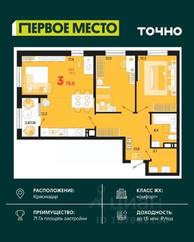 В продаже 4-к квартира от застройщика! ЖК "Рекорд" 2 очередь, г. Краснодар, Литер 5. Срок сдачи: 2 кв. 2026, общей площадью 116 кв.м., на 23 этаже. Жилой Комплекс "РЕКОРД" - место вашего баланса. Город снаружи природа внутри. Квартал с максимумом возможностей для хорошо сбалансированной жизни. Расположен в оживленном благоустроенном районе города. Сочетает в себе и жилую застройку, и торгово-деловые центры. Здесь все под рукой, здесь центр городских событий. • Уникальная локация центр города • Современная архитектура • Панорамные виды • Двухуровневые квартиры с камином и террасой • Элегантные входные группы • Архитектурная подсветка фасадов • Школа во дворе (1550 мест) • Детский сад во дворе (110 мест) • Двор без машин • Подземный паркинг и гостевые парковки • Круглосуточный пост охраны • Медицинский центр • Фитнес центр • Система "умный дом" • Баскетбольная и универсальная спортивные площадки • Современные развивающие детские игровые площадки • Ресторанный дворик с аллеей и фонтаном • Храм с уникальной архитектурой • Премиальные лифты с подсветкой и музыкой • Звукоизоляционные окна • Зарядные устройства для электромобилей • Ароматизация мест общего пользования • Элегантные входные группы • Дизайнерские лобби • Консьерж сервис • Сквозные подъезды • Кладовки • Кондиционирование холлов • Благоустройство территории с Арт объектом • Воркаут-зоны • Зона коворкинга Приобрести квартиру можно одним из способов: -субсидированная семейная ипотека 4,5 % на весь срок -рассрочка до конца строительства -оплата наличными -дистанционная покупка Позвоните сейчас и забронируйте квартиру со скидкой! Продам квартиру в новостройке в округе Карасунский в городе Краснодар.