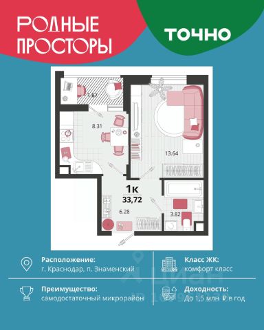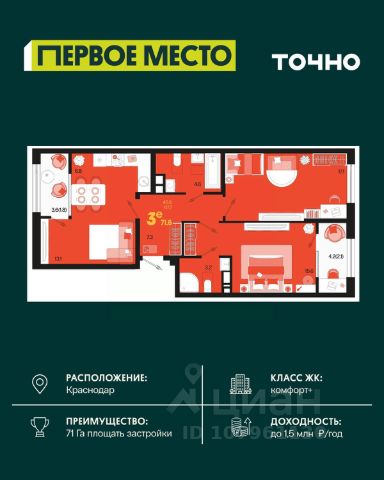 В продаже квартира-студия от застройщика! ЖК "Рекорд" 2 очередь, г. Краснодар, Литер 4 Срок сдачи: 4 кв. 2026, общей площадью 30.4 кв.м., на 3 этаже. Жилой Комплекс "РЕКОРД" - место вашего баланса. Город снаружи природа внутри. Квартал с максимумом возможностей для хорошо сбалансированной жизни. Расположен в оживленном благоустроенном районе города. Сочетает в себе и жилую застройку, и торгово-деловые центры. Здесь все под рукой, здесь центр городских событий. • Уникальная локация центр города • Современная архитектура • Панорамные виды • Двухуровневые квартиры с камином и террасой • Элегантные входные группы • Архитектурная подсветка фасадов • Школа во дворе (1550 мест) • Детский сад во дворе (110 мест) • Двор без машин • Подземный паркинг и гостевые парковки • Круглосуточный пост охраны • Медицинский центр • Фитнес центр • Система "умный дом" • Баскетбольная и универсальная спортивные площадки • Современные развивающие детские игровые площадки • Ресторанный дворик с аллеей и фонтаном • Храм с уникальной архитектурой • Премиальные лифты с подсветкой и музыкой • Звукоизоляционные окна • Зарядные устройства для электромобилей • Ароматизация мест общего пользования • Элегантные входные группы • Дизайнерские лобби • Консьерж сервис • Сквозные подъезды и доступ по Face ID • Кладовки • Кондиционирование холлов • Благоустройство территории с Арт объектом • Воркаут-зоны • Зона коворкинга • Wi-fi и USB розетки на всей территории двора Приобрести квартиру можно одним из способов: -субсидированная семейная ипотека 4,5 % на весь срок -рассрочка до конца строительства -оплата наличными -дистанционная покупка Позвоните сейчас и забронируйте квартиру со скидкой! Продам квартиру в новостройке в округе Карасунский в городе Краснодар.