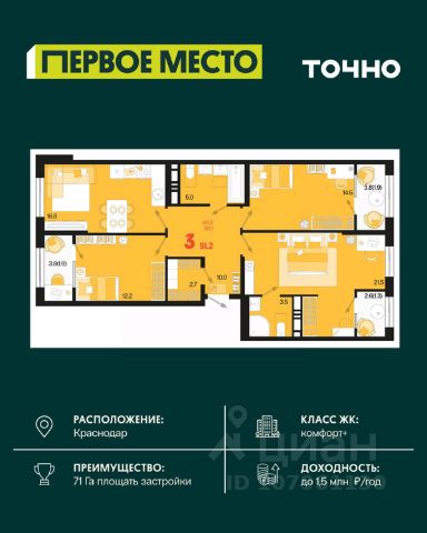 В продаже 3-к квартира от застройщика! ЖК "Рекорд" 2 очередь, г. Краснодар, Литер 2. Срок сдачи: 2 кв. 2026, общей площадью 88.1 кв.м., на 3 этаже. Жилой Комплекс "РЕКОРД" - место вашего баланса. Город снаружи природа внутри. Квартал с максимумом возможностей для хорошо сбалансированной жизни. Расположен в оживленном благоустроенном районе города. Сочетает в себе и жилую застройку, и торгово-деловые центры. Здесь все под рукой, здесь центр городских событий. • Уникальная локация центр города • Современная архитектура • Панорамные виды • Двухуровневые квартиры с камином и террасой • Элегантные входные группы • Архитектурная подсветка фасадов • Школа во дворе (1550 мест) • Детский сад во дворе (110 мест) • Двор без машин • Подземный паркинг и гостевые парковки • Круглосуточный пост охраны • Медицинский центр • Фитнес центр • Система "умный дом" • Баскетбольная и универсальная спортивные площадки • Современные развивающие детские игровые площадки • Ресторанный дворик с аллеей и фонтаном • Храм с уникальной архитектурой • Премиальные лифты с подсветкой и музыкой • Звукоизоляционные окна • Зарядные устройства для электромобилей • Ароматизация мест общего пользования • Элегантные входные группы • Дизайнерские лобби • Консьерж сервис • Сквозные подъезды • Кладовки • Кондиционирование холлов • Благоустройство территории с Арт объектом • Воркаут-зоны • Зона коворкинга Приобрести квартиру можно одним из способов: -субсидированная семейная ипотека 4,5 % на весь срок -рассрочка до конца строительства -оплата наличными -дистанционная покупка Позвоните сейчас и забронируйте квартиру со скидкой! Продам квартиру в новостройке в округе Карасунский в городе Краснодар.
