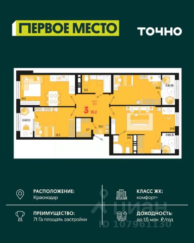 В продаже 4-к квартира от застройщика! ЖК "Рекорд" 2 очередь, г. Краснодар, Литер 5. Срок сдачи: 2 кв. 2026, общей площадью 116 кв.м., на 23 этаже. Жилой Комплекс "РЕКОРД" - место вашего баланса. Город снаружи природа внутри. Квартал с максимумом возможностей для хорошо сбалансированной жизни. Расположен в оживленном благоустроенном районе города. Сочетает в себе и жилую застройку, и торгово-деловые центры. Здесь все под рукой, здесь центр городских событий. • Уникальная локация центр города • Современная архитектура • Панорамные виды • Двухуровневые квартиры с камином и террасой • Элегантные входные группы • Архитектурная подсветка фасадов • Школа во дворе (1550 мест) • Детский сад во дворе (110 мест) • Двор без машин • Подземный паркинг и гостевые парковки • Круглосуточный пост охраны • Медицинский центр • Фитнес центр • Система "умный дом" • Баскетбольная и универсальная спортивные площадки • Современные развивающие детские игровые площадки • Ресторанный дворик с аллеей и фонтаном • Храм с уникальной архитектурой • Премиальные лифты с подсветкой и музыкой • Звукоизоляционные окна • Зарядные устройства для электромобилей • Ароматизация мест общего пользования • Элегантные входные группы • Дизайнерские лобби • Консьерж сервис • Сквозные подъезды • Кладовки • Кондиционирование холлов • Благоустройство территории с Арт объектом • Воркаут-зоны • Зона коворкинга Приобрести квартиру можно одним из способов: -субсидированная семейная ипотека 4,5 % на весь срок -рассрочка до конца строительства -оплата наличными -дистанционная покупка Позвоните сейчас и забронируйте квартиру со скидкой! Продам квартиру в новостройке в округе Карасунский в городе Краснодар.