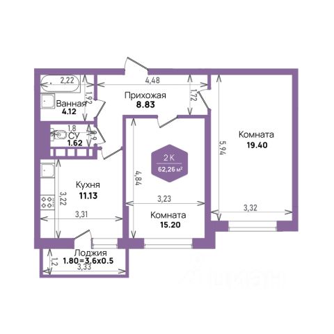 Потолки 2,85 м, раздельный санузел.