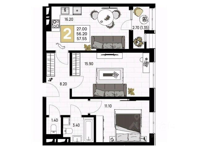 Данный юнит - корпус 1, секция секция3 этаж2 номер33 Купить квартиру в новостройке в Краснодарском крае.