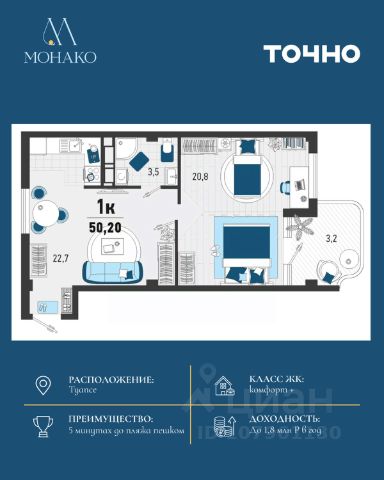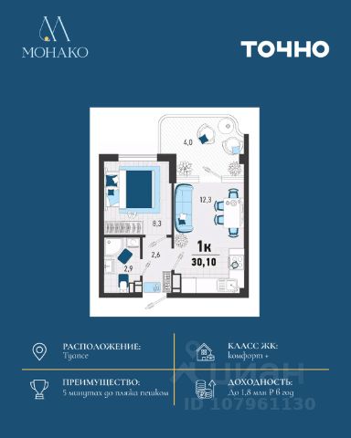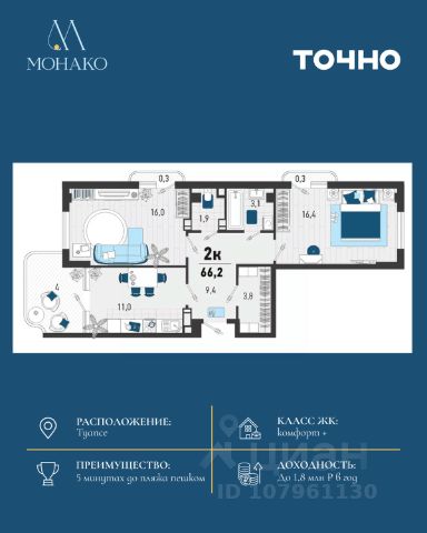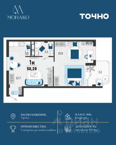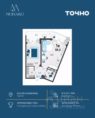 Представляем вашему вниманию жилой комплекс "Монако", который расположился на берегу Черноморского побережья в укромном поселке Агой Туапсинского района. Жилой комплекс "Монако" - это олицетворение стиля и комфорта! Трехэтажный кирпично-монолитный дом с фасадом из белой штукатурки - это ваша новая резиденция. Дизайнерская отделка входных групп в стиле морских волн также подчеркивает роскошь этого места. На территории комплекса "Монако" вас ждет ухоженный ландшафтный дизайн, спортивная площадка, детская площадка с безопасным покрытием, зона отдыха и барбекю. Круглосуточное видеонаблюдение обеспечивает вашу безопасность. Наземная парковка для автомобилей сделает вашу жизнь еще удобнее. Отдельным преимуществом является готовый дизайн-проект квартир не просто с отделкой, но и с установленным кухонным гарнитуром. Качественные и долговечные материалы позволят создать индивидуальный интерьер, и вам останется только самое приятное — заняться расстановкой мебели и декорированием. Представьте себе жизнь в квартире с панорамными окнами, откуда открывается великолепный вид на горы и море. В квартире представлена открытая лоджия с мебелью из ротанга, где можно с утра выпить чашку кофе и послушать пение птиц. Расположенный в селе Агой Туапсинского района, ЖК "Монако" предлагает все необходимое для комфортной жизни: школы, детские сады, медицинские центры, магазины, кафе и рестораны. Благоустроенный пляж, в 5ти минутах ходьбы от ЖК, добавляет вам возможность наслаждаться морским воздухом. До центра города Туапсе всего 15 минут на транспорте. Не упустите шанс жить роскошно! ЖК "Монако" - это ваша мечта о прекрасной жизни, ожившая прямо здесь и сейчас! Звоните нам прямо сейчас и бронируйте квартиру!