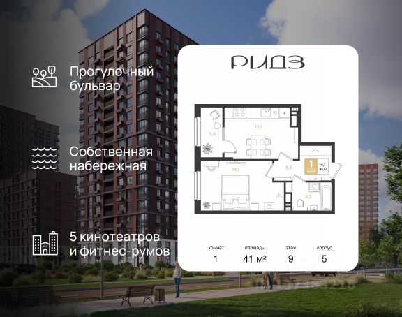 Продается 1-комнатная квартира в современном клубном квартале "Архитектор" от федерального застройщика ЮгСтройИнвест.