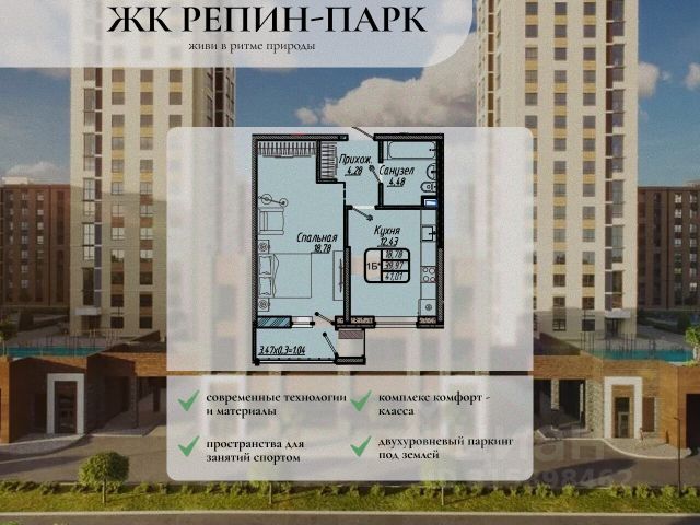 Уникальное предложение в жилом комплексе "Репин Парк"! Комплекс расположен всего в 10 минутах от центра Краснодара, в Фестивальном микрорайоне. Строгое соблюдение сроков и высокое качество строительства - главные преимущества "Репин Парк". Современные технологии и материалы обеспечивают надежность и экологичность зданий. Монолитный железобетон и трехслойные наружные стены обеспечивают прочность и сохраняют тепло. Переменная этажность комплекса от 9 до 18 этажей позволяет получить больше солнечного света для всех уровней квартир с внутренней стороны. Площадь придомовой территории будет оформлена зелеными насаждениями, создавая приватное пространство для отдыха, детских игр и семейного досуга. Во дворе также будут пространства для занятий спортом и воркаутом. Парковка будет предусмотрена на подземном уровне с двухуровневым паркингом для жителей и гостевыми машиноместами. Квартира сдается с уже завершенными черновыми работами, включая коммуникации, стяжку пола, разводку электросетей и теплоснабжения, остекление окон и балконов, установку радиаторов и входных дверей. В ЖК также предусмотрены индивидуальные кладовые помещения. Благодаря удобному расположению, жители "Репин Парк" могут наслаждаться пешей доступностью к крупным сетевым магазинам, фитнес-клубам, школам, детским садам, кафе, ресторанам и остановкам общественного транспорта. Удобная транспортная развязка обеспечивает простой доступ и избавляет от пробок. "Репин Парк" предлагает комфортное расположение, полный спектр социальных и инфраструктурных объектов, современные технологии и уютную атмосферу. Качество, комфорт и доступность - вот то, что делает "Репин Парк" особенным. Звоните нам прямо сейчас! Успейте купить свою счастливую квартиру!