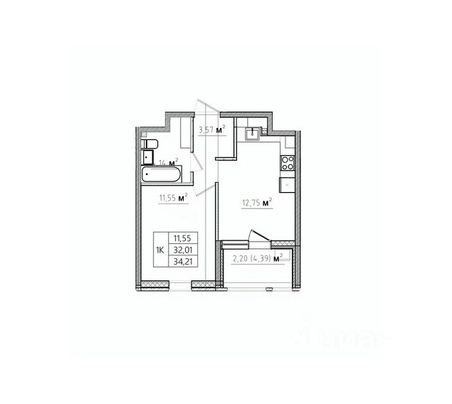 • ✅ Минимальная площадь: 43,9 м²