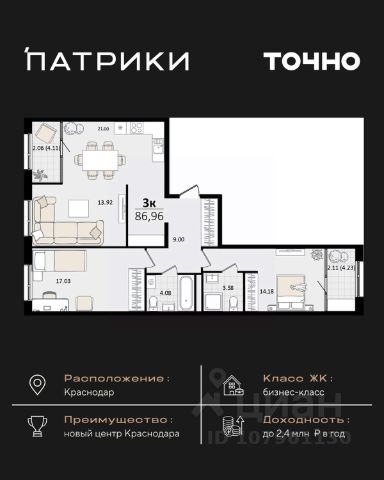 Продаются 2-комнатные апартаменты в сданном доме (Дом 75/6), срок сдачи: II-кв. 2023, общей площадью 48.8 кв.м., на 9 этаже. Апарт-отель The Grand Palace - новая точка притяжения на карте Краснодара. Проект формирует особенный облик деловой части города и вдохновляет его жителей. Апарт-отель - это новый для Краснодара формат жилья, где можно постоянно жить в более комфортных, чем в обычном доме условиях самому и с семьей или купить готовые апартаменты с ремонтом в качестве инвестиции для сдачи в красткосрочную или долгосрочную аренду. От обычного жилого комплекса апарт-отель отличает собственная внутренняя инфраструктура. Резидентам апартаментов доступны услуги зоны SPA и фитнеса, медицинского консьержа, ресторана авторской кухни, прачечной и клининга, коворкинга и лобби-бара. Все апартаменты продаются с ремонтом под ключ! Единый архитектурный стиль и продуманный до мелочей дизайн всех помещений и апартаментов надолго останется актуальным. Инфраструктура - На расстоянии менее 1 км. находятся крупнейшие торгово-развлекательные центры : СБС Мегамолл с кинотеатром, ресторанами, кафе, ТРК Галактика. - Рядом 2 premium фитнес-центра с бассейнами 50 GYM и X-FIT - 10 минут пешком. - Удачный район не только для отдыха, но и бизнеса: с оптовыми базами, офисными центрами, складскими помещениями. - Удобная транспортная развязка с выездом в любой район города, аэропорт и на трассу М4 к морю. - Множество остановок общественного транспорта, в том числе маршруток и трамвая в любой конец города. 15 минут пешком до детского сада и школы 24 Всё это обеспечит повышенный интерес и постоянный спрос на апартаменты, что гарантирует стабильный доход от рентабельной недвижимости в Краснодаре, цена на которую будет только расти. Продам квартиру в новостройке с отделкой в микрорайоне ХБК в городе Краснодар.