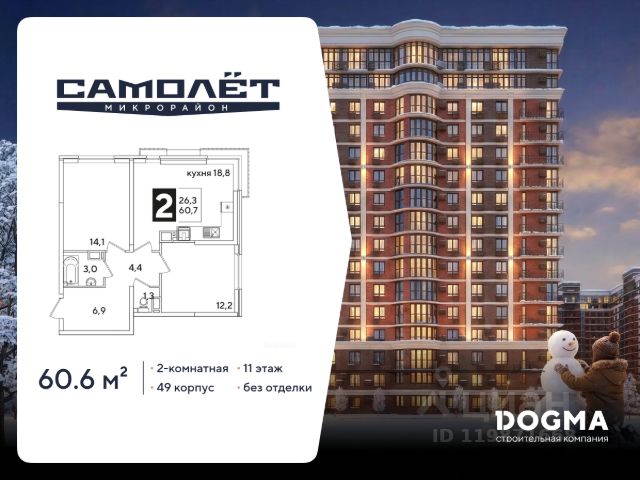 Продаётся 2-комнатная квартира в строящемся доме (Литер 10), срок сдачи: II-кв. 2026, общей площадью 65.39 кв.м., на 17 этаже. Расположение, транспортная доступность Жилой квартал "Славянка" из десяти 16- и 21-этажных домов и 5-уровневого наземного паркинга с земельным участком 8 гектар расположен в молодом Славянском районе на северо-западе Краснодара. В ста метрах проходит улица Красных Партизан, по которой можно быстро доехать в центр города или соседние районы, а в километре улица Западный обход, открывающая дорогу на трассу Р-268 (на север в сторону Тимашевска) или на северо-запад к Азовскому морю и в Крым. В пешей доступности расположены Академический сквер и Ботанический сад. Инфраструктура Цокольные этажи корпусов отданы под коммерческие помещения, где будут открываться магазины, офисы сервисных служб, компаний сферы услуг и пр. объекты инфраструктуры. Около домов комплекса расположены супермаркеты "Пятерочка" и "Магнит", аптека. В радиусе двух километров можно найти два детских сада, две общеобразовательных школы (16 и 63), школу-интернат 3, гипермаркет "Лента", оздоровительный центр "Аквалига", отделение почты и банка, торговый центр с кинотеатром, городскую больницу и Микрохирургию глаза им.Федорова. В шаговой доступности открыты фитнес-клубы KingFit и "Европа Фитнес". Район молодой, инфраструктура развивается по мере появления новых жилых комплексов. Рядом останавливаются автобусы, на которых можно доехать до школы 45 и 90, детской школы искусств, торгового комплекса "Галерея Краснодар", рынка и ТРЦ "Мега Адыгея-Кубань" с гипермаркетами Ашан, Леруа Мерлен, Metro, Спортмастер и М.Видео. Надежность застройщика ООО "КубаньГрадИнвестСтрой" было создано в 2012 году, хотя компания имеет опыт работы на строительном рынке Краснодара с 2006 года. Застройщик довольно быстро завоевал положительную репутацию. Среди очевидных преимуществ компании по сравнению с конкурентами: земельные участки на всех объектах оформлены в собственность, кредитные средства на строительство не привлекаются (только свои ресурсы и инвестиции дольщиков), используется монолитно-кирпичная технология домостроения. Кроме того, предлагаются гибкие условия покупки (материнский капитал, ипотека от нескольких банков, беспроцентная рассрочка до трех месяцев) и скидки пенсионерам, врачам, учителям, многодетным семьям, студентам, инвалидам. Компания владеет строительной техникой и занимается производством бетона. Проект жилого комплекса "Славянка" начат в 2016 году, к этому времени были уже сданы в эксплуатацию "Ставропольский" и "Парус". Продажи оформляются по договорам ДДУ в соответствии с ФЗ-214. Архитектура В состав ЖК "Славянка", расположенного в селитебной зоне города на территории 8 га, входит десять 16-21-этажных корпусов на 4620 квартир и 5-уровневый наземный паркинг на 3200 машиномест. Представлены студии 25-28 кв. м, однокомнатные квартиры 33-36 кв. м и двухкомнатные 54-63 кв. м. Вместо балконов сделаны лоджии. В двухкомнатных раздельный санузел, в студиях и одн Купить квартиру в новостройке с отделкой в микрорайоне Славянский в городе Краснодар.