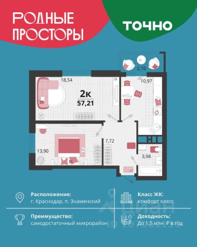 Продается квартира-студия в Жилом комплексе "Родные просторы"! В квартире выполнена качественная предчистовая отделка: Выровненные и подготовленные для отделки финишными материалами стены — улучшенная штукатурка стен. Подготовленный к укладке покрытия пол — стяжка пола. Коммуникации, выведенные в специальных местах в санузлах и кухонной зоне. Металлические входные двери с внутренней фрезеровкой и 2 замками. Металлопластиковые окна с долговечной фурнитурой. Радиаторы со встроенными терморегуляторами. Гидроизоляция пола санузлов. Крутая комплексная застройка территории с развитой инфраструктурой - на территории комплекса расположены школа на 1550 мест, 3 детских сада на 800 мест, поликлиника и частные клиники. На первых этажах домов расположены коммерческие помещения. Дворы свободны от автомобилей. Для автовладельцев предусмотрено более 2000 мест на открытых парковках по периметру микрорайона, и многоуровневые крытые наземные паркинги. Большая часть микрорайона оборудована пешеходными зонами и благоустроенными придомовыми территориями со спортивными площадками и большими детскими игровыми пространствами. Вся инфраструктура района находится в пешей доступности и располагаться внутри микрорайона. Рядом трасса М-4 - удобный выезд в сторону моря! Звоните прямо сейчас и покупайте квартиру в классном жилом комплексе!