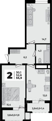 Продаётся 2-комнатная квартира в строящемся доме (Литер 3), срок сдачи: II-кв. 2027, общей площадью 64.07 кв.м., на 9 этаже.