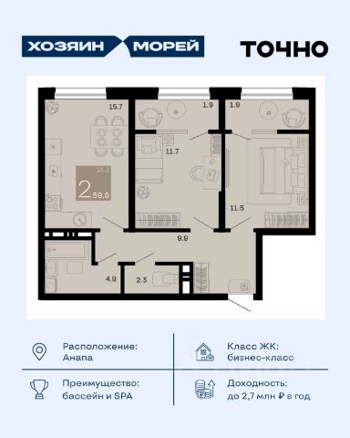 Жилой комплекс включает в себя корпуса высотой от 8 до 12 этажей. Дома возведены по качественной монолитной технологии строительства, с использованием комбинированных фасадов. В здании выполнена дизайнерская отделка входных групп и установлены современные скоростные лифты. В проекте предложено множество планировочных решений классического типа: от уютных студий до просторных 3-ех комнатных квартир. Сдаются они с подчистовой отделкой, панорамными окнами и высотой потолков 2,7 метра. Территория комплекса благоустроена и озеленена. Во дворе спроектированы безопасные детские и спортивные площадки с тренажерами и многофункциональными воркаут-комплексами, предусмотрены зоны отдыха и барбекю, а также зона для выгула собак. На территории комплекса возведена школа и 2 детских сада. Для владельцев автомобилей предусмотрен подземный паркинг. Жилой комплекс расположен в развитом районе города, где есть вся необходимая инфраструктура. Недалеко от комплекса располагаются торговые центры, аптеки, пункты выдачи заказов, школы, детские сады, а также поликлиники. До центра Анапы можно добраться за 10 минут транспортом.