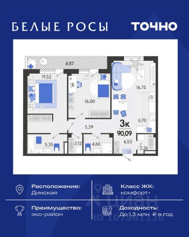 Проект включает в себя 4 корпуса в едином архитектурном стиле. Дома спроектированы в классическом европейском стиле с использованием светло-бежевого кирпича в облицовке фасадов. Входные группы каждого дома оборудованы остекленными дверьми витражного типа с чиповыми замками и домофоном. На всей территории комплекса разработана безбарьерная среда. Также все подъезды оборудованы автоматическими подъемниками для людей с ограниченными возможностями. В ЖК предложено множество планировочных решений: в наличии квартиры, как классического типа, так и европланировки. Они сдаются с подчистовой отделкой и высотой потолков 2,75 - 3 метра. На территории комплекса находится детский сад. На первых этажах корпусов предусмотрены коммерческие помещения. Дворы благоустроены: организованы прогулочные аллеи, свободные от машин, установлены детские и спортивные площадки. ЖК возводится в станице Динская. На маршрутке или автобусе можно быстро добраться в центр станицы или в Краснодар. Дорога до центральной части Динской займет около 10 минут, там можно провести время в кинотеатре или торговом центре, купить продукты на фермерском рынке, погулять с ребенком в детском парке.