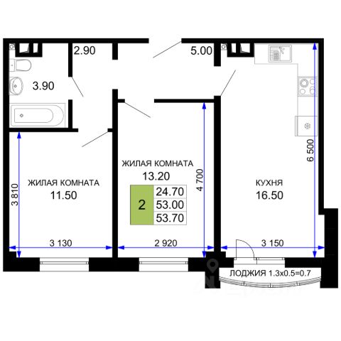 Продаётся 2-комнатная квартира в строящемся доме (Дом 1), срок сдачи: II-кв. 2027, общей площадью 49.05 кв.м., на 3 этаже. Новый жилой комплекс "Крылова 13" от застройщика "ССК(Краснодар)" расположен по адресу Краснодарский край, Анапа.