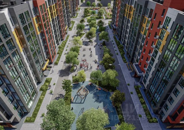Уютный двор с дизайнерским озеленением, рулонные газоны, клумбы с автополивом, современные детские и спортивные площадки с безопасным покрытием и много свободного пространства благодаря широкой посадке домов.