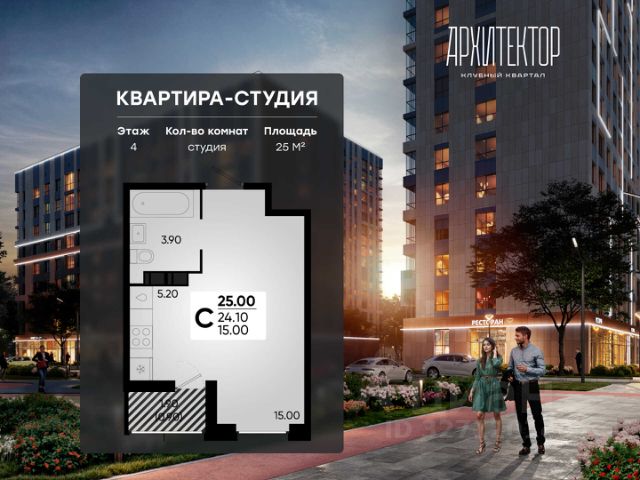 Жилой комплекс "Первое место" — современный проект, возведенный по технологии монолитного строительства с фасадами, облицованными штукатуркой с подсветкой в ночное время. Дома квартала имеют переменную этажность, что позволяет сформировать разнообразную архитектурную среду. В здании имеются пассажирский и грузовой лифты, дизайнерские холлы с зонами отдыха, колясочные и кладовые для хранения сезонных вещей. В проекте представлено множество планировочных решений — от студий до просторных 4х-комнатных квартир как в классических, так и в европланировках, в том числе имеющие мастер-спальни, ниши для шкафов и стиральных машин, встроенные лоджии с панорамным остеклением. Лоты сдаются с черновой и чистовой отделкой, высотой потолков до 3 метров и увеличенными окнами. Территория комплекса благоустроена: имеется двор с ландшафтным дизайном, места для активного времяпрепровождения и отдыха, зоны выгула собак. Развита социальная инфраструктура внутри комплекса — имеются школы, детские сады, медицинские и спортивные учреждения. Для автовладельцев предусмотрен подземный паркинг. Жилой комплекс "Первое место" располагается в новом районе города — Новознаменском, в Карасунском округе северо-восточной части Краснодара, и имеет выезд на трассы М4 "ДОН" и "Джубга-Сочи" в направлении Черного моря и горнолыжных курортов. В пешей доступности находятся продовольственные магазины, торговые центры, медицинские и образовательные учреждения, кафе и рестораны. До цента краснодара — 30 минут. Продам квартиру-студию 25 м2 (квадратных метров) в Краснодарском крае.