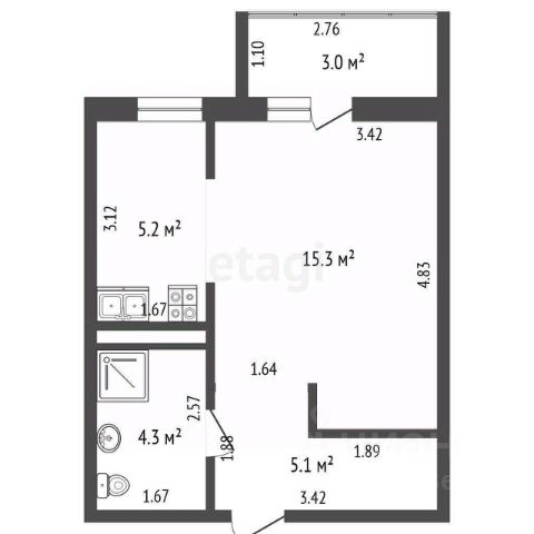 санузел - 3,52м ,