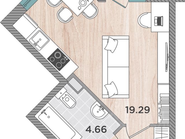 зона кухни - 4,19м ,