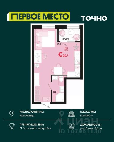 Жилой район "Первое место"- один из самых масштабных проектов в России. На территории 71 га 18 кварталов, 31 дом переменной этажности от 8 до 18 этажей, собственный парк 9 га, храмовый комплекс, пешеходный бульвар "Круг семьи", детские и спортивные площадки, мангальные зоны и различные локации для отдыха. В шаговой доступности действующие муниципальные образовательные учреждения: школа на 1 100 мест и детский сад на 250 мест. Помимо этого, в жилом районе "Первое место" построятся школа на 1700 мест с крытым 25-метровым бассейном и 5 детских садов на 1 490 мест. На первых этажах многоуровневых парковок "паркхабов" разместится более 61 тыс м2 коммерческих помещений. Жителям будут доступны собственный фитнес-центр, кафе, рестораны и магазины. В каждом подъезде предусмотрены дизайнерские холлы в стиле лобби отелей, консьерж-сервис, лапомойки, отдельные колясочные и велосипедные. Также в домах будут просторные кладовые помещения и комнаты для хранения почты с почтоматами для получения посылок из маркетплейсов.