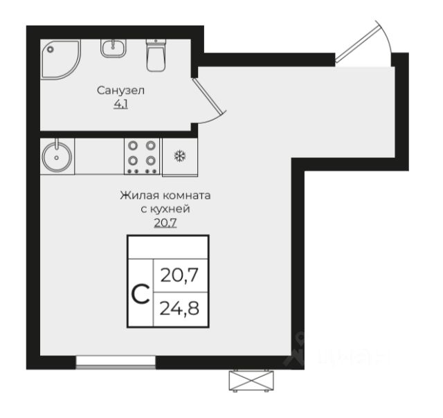Продаётся студия в сданном доме (Литер 4), срок сдачи: III-кв. 2022, общей площадью 21.54 кв.м., на 13 этаже. Расположение, транспортная доступность