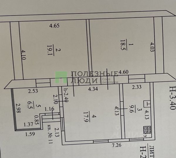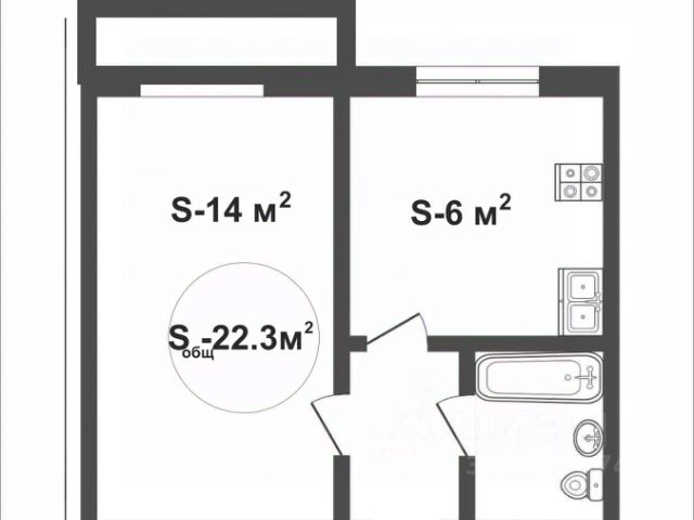 Квартира не угловая, с продуманной планировкой и большой кухней 15,5 м²
