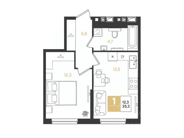 Квартира площадью 24,5 кв.м расположена на 22 этаже и имеет прекрасные видовые характеристики (вид на город, окна выходят на прогулочную зону и сквер)
