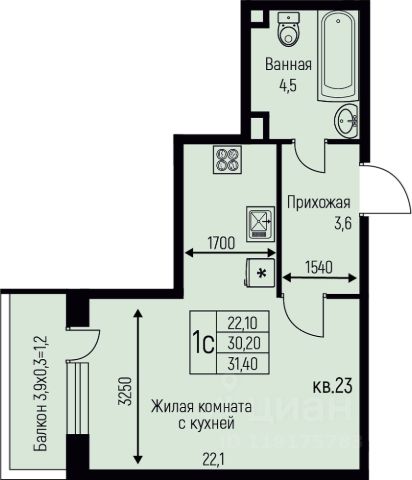 Продаётся студия в сданном доме (Литер 12), срок сдачи: IV-кв. 2024, общей площадью 34.01 кв.м., на 1 этаже. РАСПОЛОЖЕНИЕ