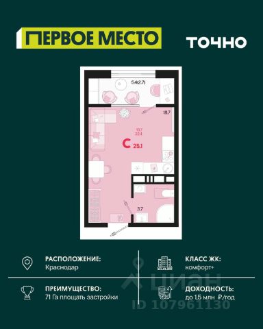 В продаже квартира-студия от застройщика! ЖК "Рекорд" 2 очередь, г. Краснодар, Литер 5 Срок сдачи: 4 кв. 2026, общей площадью 29.7 кв.м., на 11 этаже. Жилой Комплекс "РЕКОРД" - место вашего баланса. Город снаружи природа внутри. Квартал с максимумом возможностей для хорошо сбалансированной жизни. Расположен в оживленном благоустроенном районе города. Сочетает в себе и жилую застройку, и торгово-деловые центры. Здесь все под рукой, здесь центр городских событий. • Уникальная локация центр города • Современная архитектура • Панорамные виды • Двухуровневые квартиры с камином и террасой • Элегантные входные группы • Архитектурная подсветка фасадов • Школа во дворе (1550 мест) • Детский сад во дворе (110 мест) • Двор без машин • Подземный паркинг и гостевые парковки • Круглосуточный пост охраны • Медицинский центр • Фитнес центр • Система "умный дом" • Баскетбольная и универсальная спортивные площадки • Современные развивающие детские игровые площадки • Ресторанный дворик с аллеей и фонтаном • Храм с уникальной архитектурой • Премиальные лифты с подсветкой и музыкой • Звукоизоляционные окна • Зарядные устройства для электромобилей • Ароматизация мест общего пользования • Элегантные входные группы • Дизайнерские лобби • Консьерж сервис • Сквозные подъезды и доступ по Face ID • Кладовки • Кондиционирование холлов • Благоустройство территории с Арт объектом • Воркаут-зоны • Зона коворкинга • Wi-fi и USB розетки на всей территории двора Приобрести квартиру можно одним из способов: -субсидированная семейная ипотека 4,5 % на весь срок -рассрочка до конца строительства -оплата наличными -дистанционная покупка Позвоните сейчас и забронируйте квартиру со скидкой!