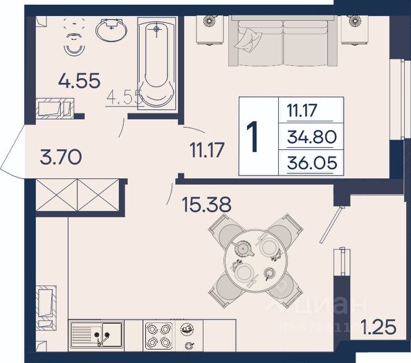 • ✓ В базе Циан 1 квартир-студий на 13 этаже в микрорайоне Табачная фабрика в городе Краснодар