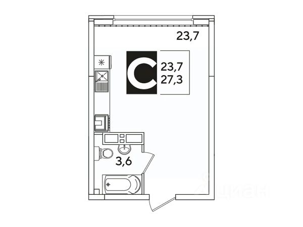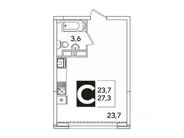 • Санузел под ключ: ванна с декоративным экраном, удобная раковина с пьедесталом, смесители, полотенцесушитель. На полу керамогранит