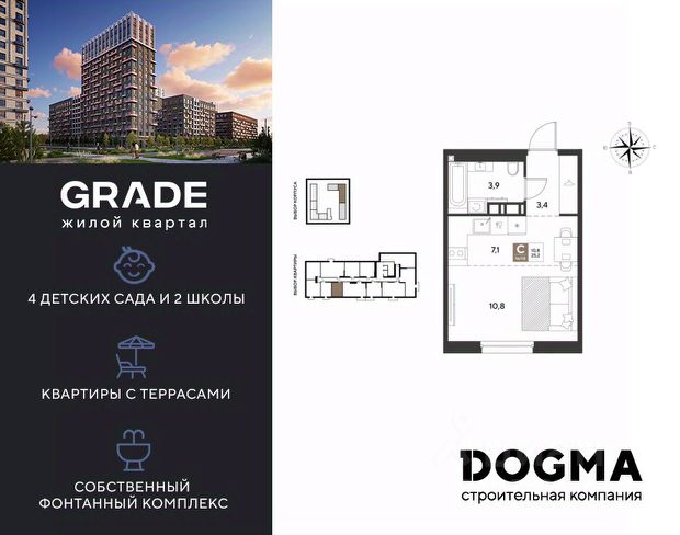 В продаже квартира-студия от застройщика! ЖК GRADE г. Краснодар, Литер 15 Срок сдачи: 4 кв. 2027, общей площадью 25.2 кв.м., на 8 этаже. GRADE от DOGMA: квартал бизнес-класса. Никогда неоклассика не была представлена в краснодарской архитектуре с таким характером. Пока не появился GRADE, неоклассический квартал, объединяющий строгие формы и величие с прогрессивными технологиями и лаконичностью современного дизайна. Жить в GRADE — значит чувствовать статус, наслаждаться свободой и управлять своим временем. Квартал с переменной этажностью 9, 16 и 18 этажей предлагает полную инфраструктуру для жизни: 4 детских сада, 2 школы, поликлиника и ФОК расположены в шаговой доступности. Ваши привилегии в GRADE: Архитектура в стиле неоклассицизм. Гранд-лобби с панорамными окнами, мягкой мебелью и выдержанной палитрой. Закрытый клуб с консьерж-сервисом: Детский клуб; Кинотеатр на 20 мест; Фитнес-рум. Благоустройство: Парк с фонтаном и амфитеатром, эко-площадки, зоны отдыха, спортивные площадки. Коммерция на первых этажах с площадками для бизнеса. Технологии "Умный дом": Управление через смартфон; Бесключевой доступ по BLE-технологии; Круглосуточное видеонаблюдение; Бесшовный Wi-Fi по всей территории; Интеллектуальные счетчики. Многоуровневый подземный паркинг с видеонаблюдением, прямым доступом на скоростном лифте и электрозарядками. Дополнительные удобства: Колясочные, велобоксы, кладовые помещения, скоростные лифты. Приобрести квартиру можно одним из способов: Семейная ипотека. Рассрочка. Оплата наличными. Дистанционная покупка. Позвоните сейчас и узнайте больше о возможностях приобретения квартиры бизнес-класса в ЖК GRADE!