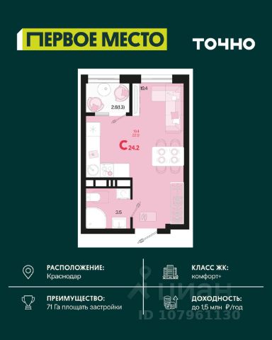 В продаже квартира-студия от застройщика! ЖК "Рекорд" 2 очередь, г. Краснодар, Литер 5 Срок сдачи: 4 кв. 2026, общей площадью 24.5 кв.м., на 14 этаже. Жилой Комплекс "РЕКОРД" - место вашего баланса. Город снаружи природа внутри. Квартал с максимумом возможностей для хорошо сбалансированной жизни. Расположен в оживленном благоустроенном районе города. Сочетает в себе и жилую застройку, и торгово-деловые центры. Здесь все под рукой, здесь центр городских событий. • Уникальная локация центр города • Современная архитектура • Панорамные виды • Двухуровневые квартиры с камином и террасой • Элегантные входные группы • Архитектурная подсветка фасадов • Школа во дворе (1550 мест) • Детский сад во дворе (110 мест) • Двор без машин • Подземный паркинг и гостевые парковки • Круглосуточный пост охраны • Медицинский центр • Фитнес центр • Система "умный дом" • Баскетбольная и универсальная спортивные площадки • Современные развивающие детские игровые площадки • Ресторанный дворик с аллеей и фонтаном • Храм с уникальной архитектурой • Премиальные лифты с подсветкой и музыкой • Звукоизоляционные окна • Зарядные устройства для электромобилей • Ароматизация мест общего пользования • Элегантные входные группы • Дизайнерские лобби • Консьерж сервис • Сквозные подъезды и доступ по Face ID • Кладовки • Кондиционирование холлов • Благоустройство территории с Арт объектом • Воркаут-зоны • Зона коворкинга • Wi-fi и USB розетки на всей территории двора Приобрести квартиру можно одним из способов: -субсидированная семейная ипотека 4,5 % на весь срок -рассрочка до конца строительства -оплата наличными -дистанционная покупка Позвоните сейчас и забронируйте квартиру со скидкой!