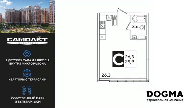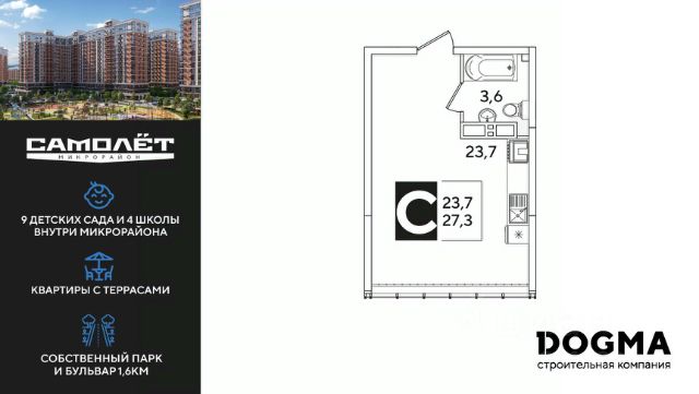 Продаётся студия в сданном доме (Литер 5), срок сдачи: IV-кв. 2023, общей площадью 21.94 кв.м., на 15 этаже. Расположение, транспортная доступность