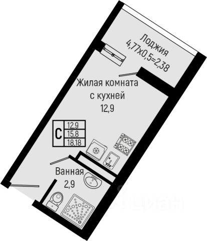 • ✓ В базе Циан 22 квартир-студий на 15 этаже в муниципальном округе Туапсинский Краснодарского края