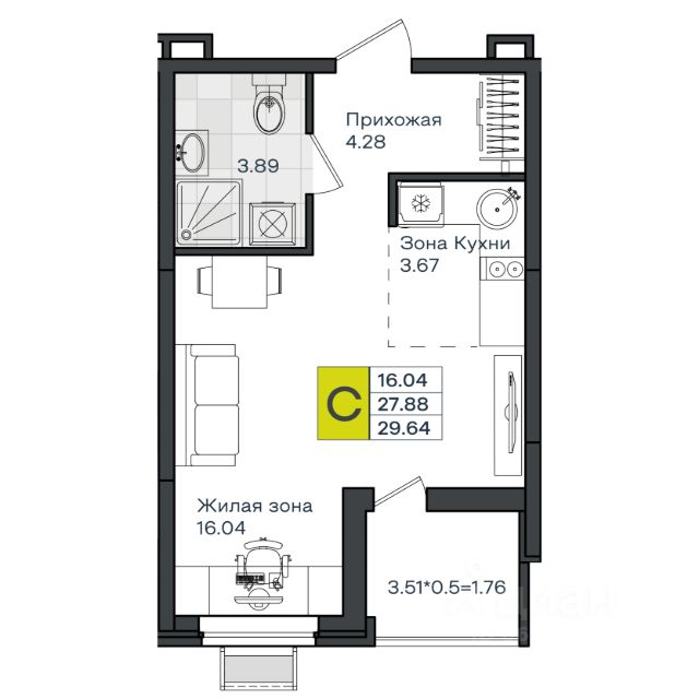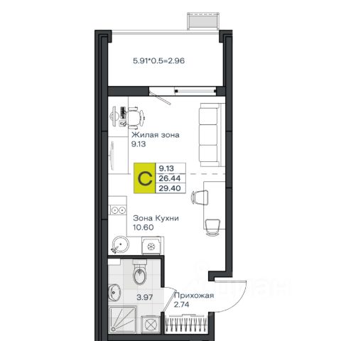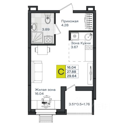 Продаётся студия в сданном доме (Литер 14), срок сдачи: I-кв. 2025, общей площадью 26.19 кв.м., на 2 этаже. РАСПОЛОЖЕНИЕ