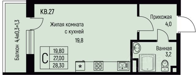 Продается студия готовая к вашему переезду! Площадь 26,7 кв.м.+5,4 кв.м. балкон. Расположение удобнейшее, в мкр. Энка по ул. Кореновская, 57 к.2. Комфортный 2 этаж 16-этажного дома.