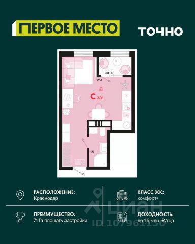 Проект ПРЕМИУМ-КЛАССА в центре Краснодара. Фестивальный микрорайон, "Поле Чудес". Дом сдан! ТОЛЬКО В ДЕКБРЕ! ЭКСКЛЮЗИВНАЯ ВЫГОДА НА ОГРАНИЧЕННЫЙ РЯД КВАРТИР в ЖК "ЕКАТЕРИНИНСКИЙ ПАРК": •на 1 ком. и 2 ком. - до 20 000 р/м2. •на 3 ком. - до 25 000 р/м2. А также льготные условия приобретения по программе "Семейная ипотека": • Ипотечная ставка 6% на весь срок • Минимальный первый взнос от 20% • Возможность оформления ипотеки на каждого родителя Торопитесь взять семейную ипотеку на текущих условиях - совсем скоро программа ужесточится. ЖК "Екатерининский парк" - лучший девелоперский проект 2024 по версии ИД "Коммерсант" (в ежегодной премии "Твердые знаки"). Здесь не просто квадратные метры, а атмосфера комфорта и приватности: • Авторская архитектура • Каскадная застройка: от малоэтажных домов 3 этажа к высотным доминантам • Элегантная баварская кладка • Подземный паркинг • Два собственных детских сада • Закрытая территория: система доступа в ЖК только для резидентов • Двор-парк с фонтаном • Зоны отдыха и барбекю • Детские эко-площадки и зоны кроссфита Премиум-подход в каждой детали: Консьерж-сервис Охрана 24/7 Дизайнерские лобби Система "Умный дом" Потолки 3,1м Резиденции на выбор: от уютных видовых квартир до масштабных резиденций до 500 м² Успейте забронировать жилье бизнес-класса с эксклюзивной выгодой. До ужесточения "Семейной ипотеки" осталось немного - торопитесь оформить, пока действуют текущие условия. Звоните прямо сейчас! Квартира-студия в Краснодаре.