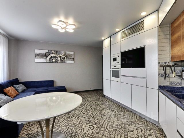 В квартире выполнен отличный ремонт, полностью новая мебель и техника, в квартире выполнена перепланировка путем объединения балконов