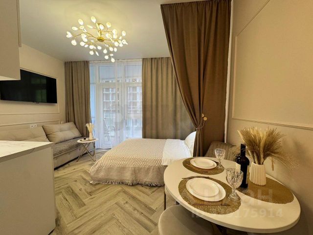 Продам квартиру-студию на море в п. Ольгинка в комплексе бизнес-класса. От моря 900 метров — 10 минут пешком. Свой выделенный пляж. Для комфорта жителей предусмотрено уникальное парковое обустройство придомовой территории с ландшафтным дизайном, прогулочные аллеи, бассейны детский и взрослый, свои магазины, рестораны. Подземный паркинг.