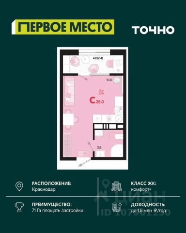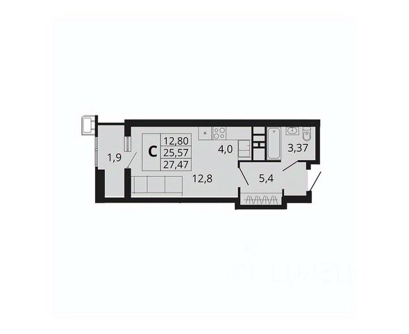 Просторная студия — идеальный выбор для молодых людей, инвесторов и тех, кто ценит комфорт и практичность!