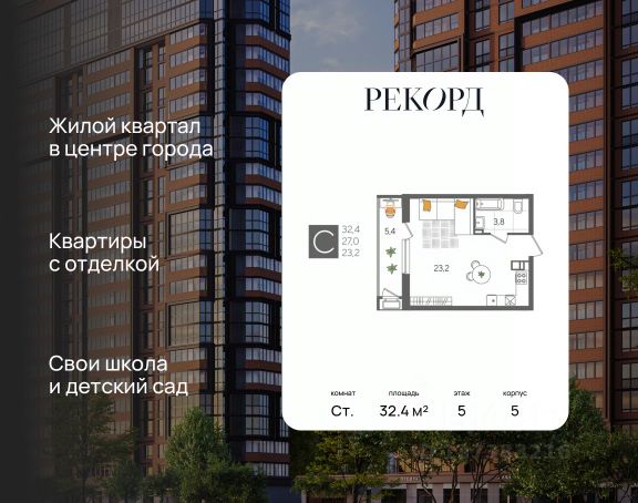 В продаже студия от застройщика! ЖК "Рекорд" 2 очередь, г. Краснодар, Литер 5. Срок сдачи: 2 кв. 2026, общей площадью 32.4 кв.м., на 5 этаже. Жилой Комплекс "РЕКОРД" - место вашего баланса. Город снаружи природа внутри. Квартал с максимумом возможностей для хорошо сбалансированной жизни. Расположен в оживленном благоустроенном районе города. Сочетает в себе и жилую застройку, и торгово-деловые центры. Здесь все под рукой, здесь центр городских событий. • Уникальная локация центр города • Современная архитектура • Панорамные виды • Элегантные входные группы • Архитектурная подсветка фасадов • Школа во дворе (1550 мест) • Детский сад во дворе (110 мест) • Двор без машин • Подземный паркинг и гостевые парковки • Круглосуточный пост охраны • Медицинский центр • Фитнес центр • Система "умный дом" • Баскетбольная и универсальная спортивные площадки • Современные развивающие детские игровые площадки • Ресторанный дворик с аллеей и фонтаном • Храм с уникальной архитектурой • Премиальные лифты с подсветкой и музыкой • Звукоизоляционные окна • Зарядные устройства для электромобилей • Ароматизация мест общего пользования • Элегантные входные группы • Дизайнерские лобби • Консьерж сервис • Сквозные подъезды • Кладовки • Кондиционирование холлов • Благоустройство территории с Арт объектом • Воркаут-зоны • Зона коворкинга Приобрести квартиру можно одним из способов: -субсидированная семейная ипотека -оплата наличными -дистанционная покупка Позвоните сейчас и забронируйте квартиру со скидкой!